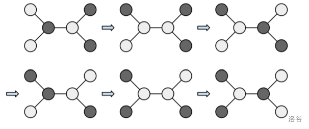 - 选择两个相邻同色结点,把它们的颜色翻转,也就是黑变白,白变黑。