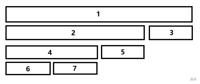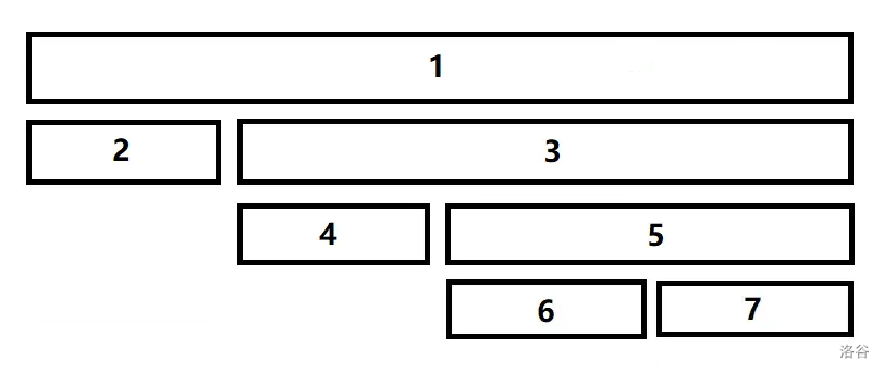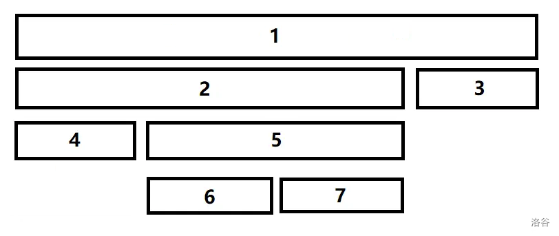 先 `s[2]=merge(s[4],s[6])`,再 `s[5]=merge(s[7],s[3])`,最后 `s[1].ls=2,s[1].rs=5` 即可。