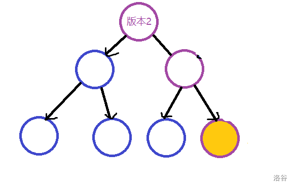 如果要访问版本 1,就从版本 1 的根往下递归,单点查询;如果要访问版本 2,同理,此时的线段树相当于这样: