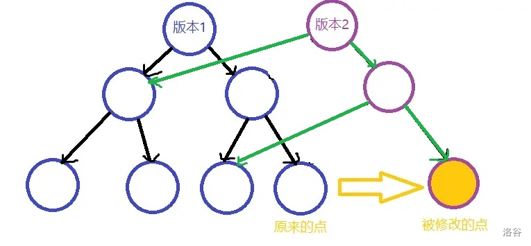 对于前者,两次更新可能会导致我们一个版本建两次 $\log n$ 个新节点。这是没问题的,空间开大一点即可。当然,你也可以保存一个时间点标记 $las$,在第一次修改前:$las = cntd$,在每次新建节点 ```Clone(rt);``` 前判断 ```rt <= las``` 来判断是否是原版本、是否需要加新点。[这篇题解 by 王鲲鹏](https://www.luogu.com.cn/article/n5thkapl) 专门讲了这个点。