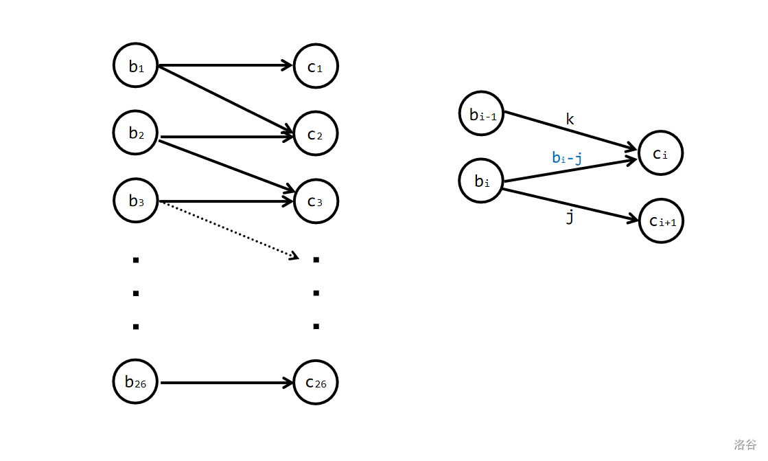 这相当于把每个 $b_i$ 划分成两部分,一部分对应 $c_i$,一部分对应 $c_{i+1}$。所有 $b_i$ 必须分完,而 $c_i$ 则不必。