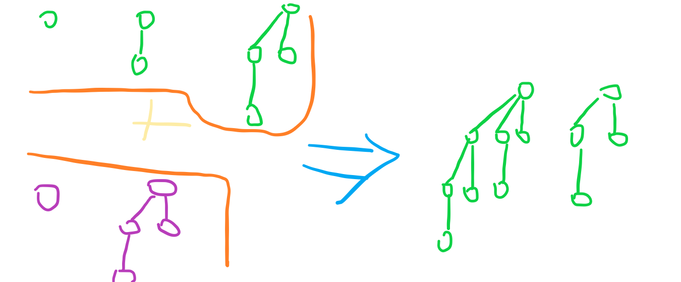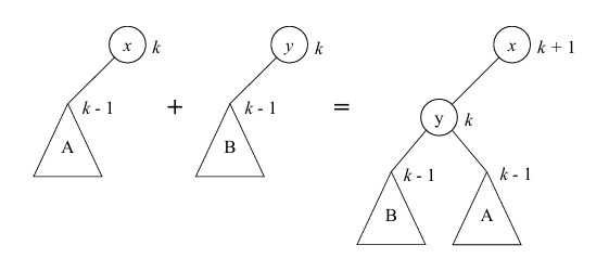 对于 rank 相同的半树,可以进行 fair-link 形成一个 rank 是它们的 rank 加一的半树。
