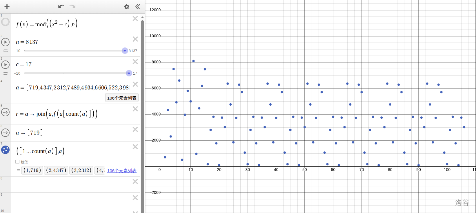 于是我们随机一下看看($n=8137, c=17, k_1=719$):