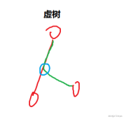 如上图,如果虚树上红边对应的 $s_i$ 不尽相同,那么必然有一条题目给定的链是如绿链那样的;但是在这种情况下,虚树中应该还有一个蓝点,这样那些 $s_i$ 不同的边就不会对应到虚树上的一条红边,而是一段红边和一段绿边。