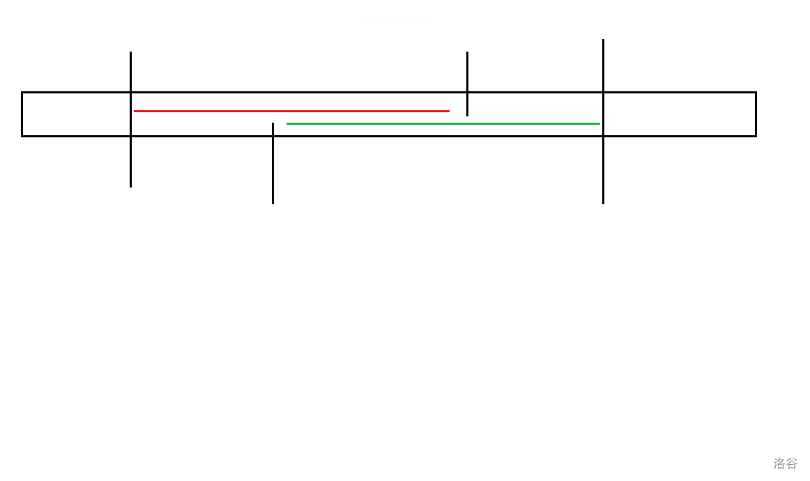 上图的红绿线段就是两个符合要求的后半段区间,那么显而易见的可以知道,没有重叠的部分是相同的。(你问为什么? $A-B=A-B$ )
