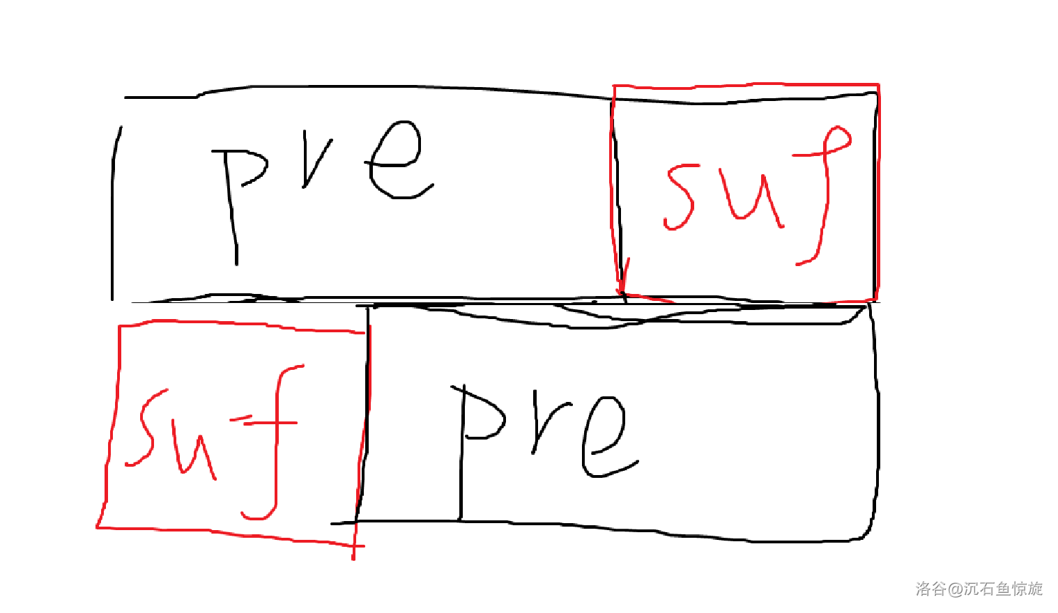 图中是 $|pre|\gt |suf|$ 的情况,另一种是同理的。