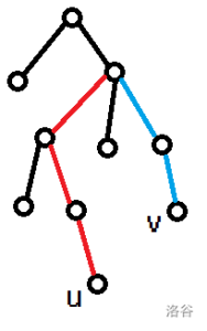 红蓝两种颜色恰好拼成 $u,v$ 两点间的路径。