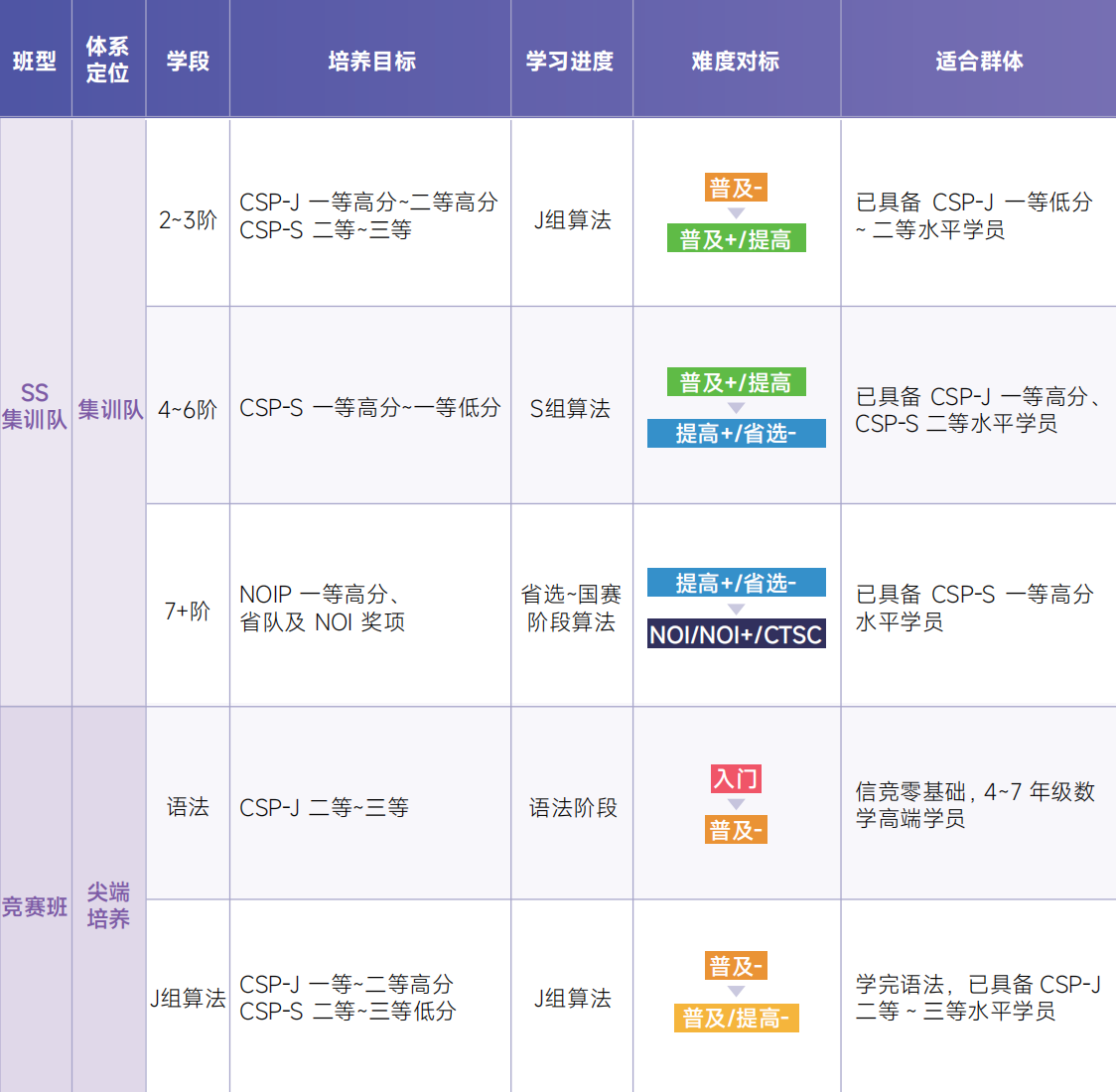 | 班型 | 时间 | 目标 |