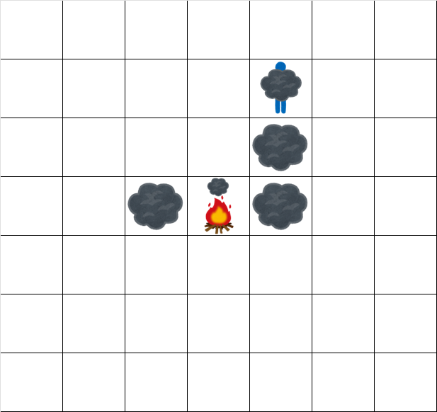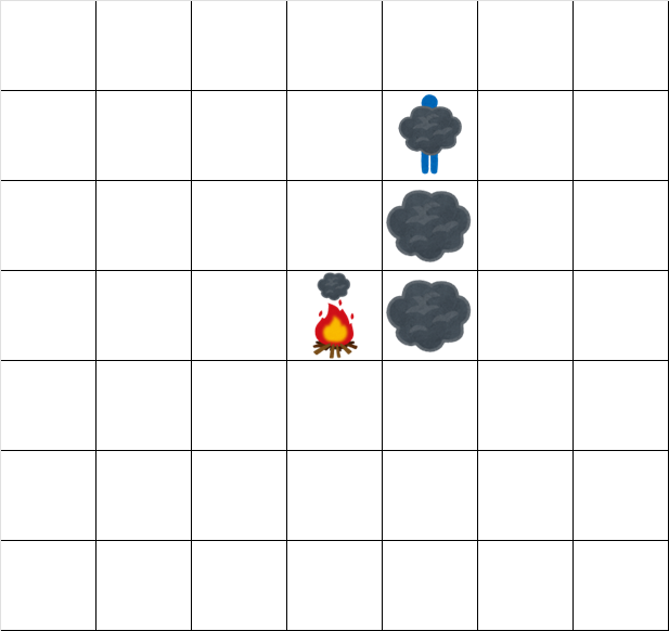 - 風が吹き、現時点で存在する全ての煙が以下の通りに移動する。