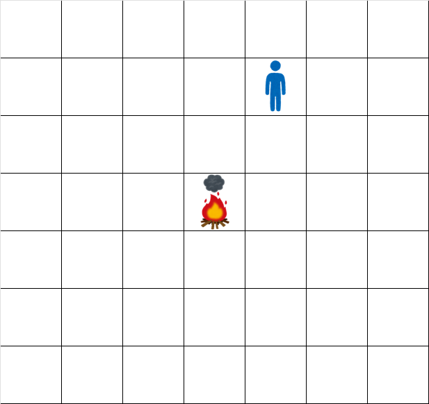 図では焚き火のあるマス $ (0,0) $ を基準として、マス $ (r,c) $ を