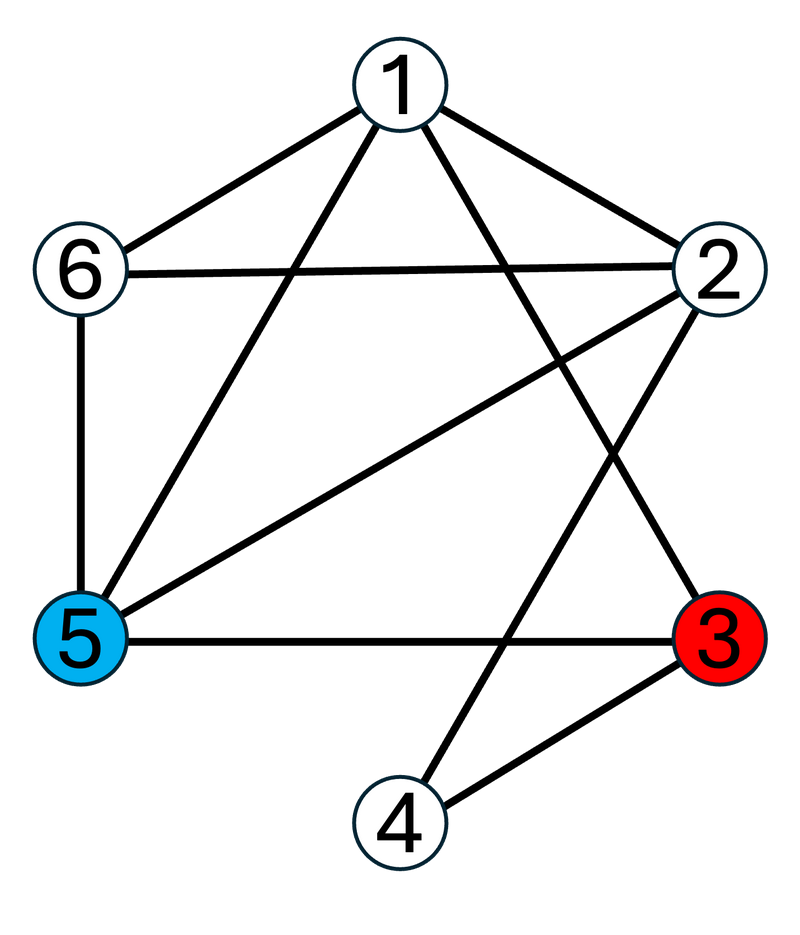 在 $G$ 上,从点 $3$ 到点 $5$ 的简单路径按照字典序排列如下: