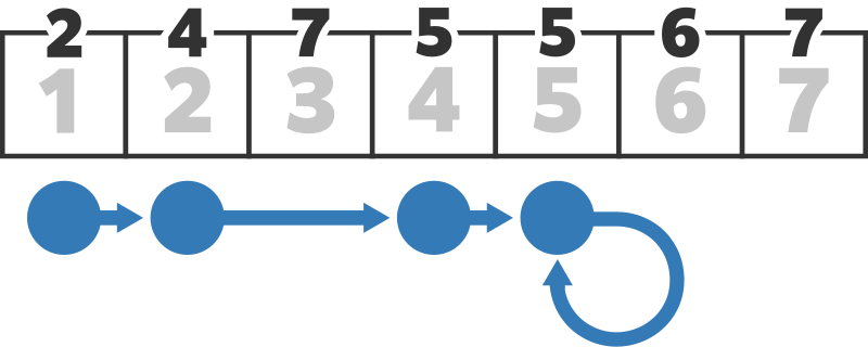 There are $ N $ cells, cell $ 1, $ cell $ 2,\ldots, $ cell $ N $ , arranged in a line. Cell $ i $ has an integer $ A_i\ (i \le A_i \le N) $ written on it.