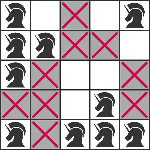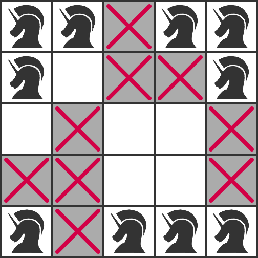 你想在这个网格上尽可能多地放置棋子,放棋子需要满足以下约束: