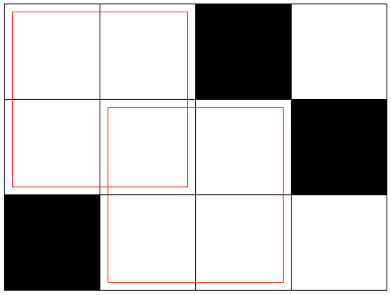 - 对于所有满足 $0 \le i < h,\ 0 \le j < w$ 的整数对 $(i,j)$,单元格 $(r_0+i, c_0+j)$ 都是白色。