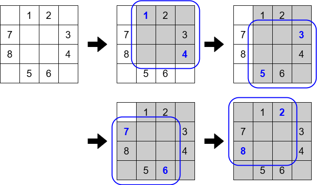 - 选择 $(4,3)$ 和 $(2,1)$ 染色;