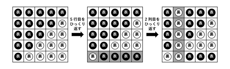 1. 首先,葵将第 $1$ 行的所有硬币翻面。