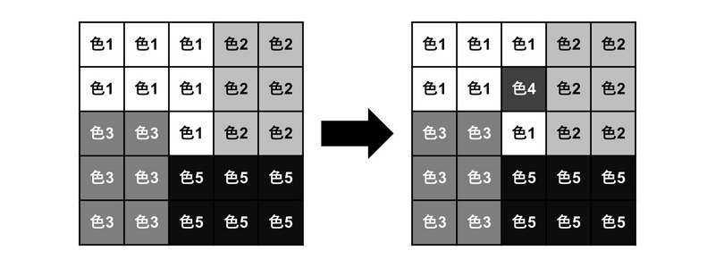 如下图,将第 $2$ 行第 $3$ 列的格子更改为颜色 $4$,可达到多彩度 $5$。