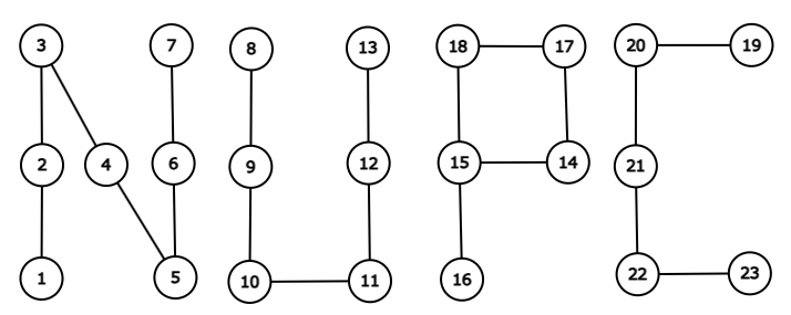 给定一个有 $N$ 个顶点、$M$ 条边的简单无向图 $G$。这里,$\mathrm{NUPC}$ 是如下图所示的图。