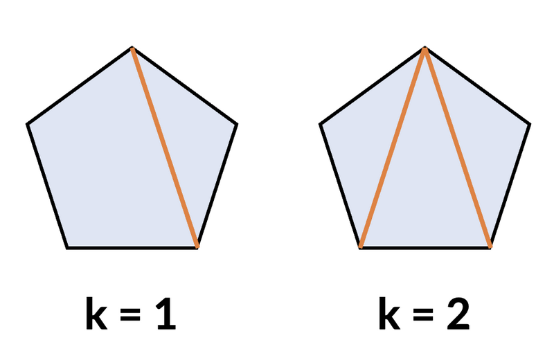 ### 样例解释 1 当 $k = 0$ 时,只有 $e_{1} = 5$,但 $5$ 不在 $S$ 中,所以答案为 $0$。 当 $k = 1$ 时,分割出的多边形边数集合必为 $\{3, 4\}$,且两者都在 $S$ 中。正五边形可以画 $1$ 条不相交对角线的方法有 $5$ 种,所以答案为 $5$。 当 $k = 2$ 时,分割出的多边形边数都为 $3$,共有 $3$ 个三角形。正五边形画 $2$ 条互不相交的对角线的方法有 $5$ 种,所以答案为 $5$。 ![](https://cdn.luogu.com.cn/upload/vjudge_pic/AT_stpc2025_1_j/3bf3cb9a3846de7b8400ab0182f412adce9435ec7b5a557bfcf99dc7992d8081.png) ### 数据范围 - 所有输入都是整数 - $3\leq N\leq 10^{5}$ - $1\leq M\leq N - 2$ - $3\leq S_{i}\leq N$ - $S_{i} < S_{i + 1}$ 由 ChatGPT 5 翻译
