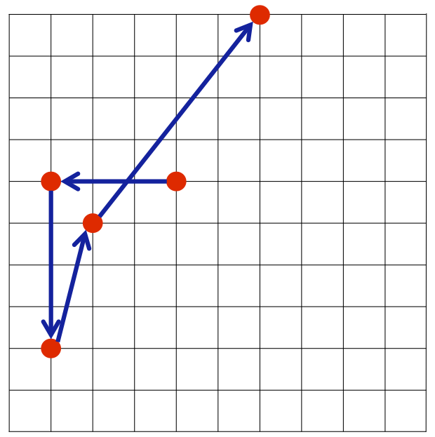 - 高桥君的程序得到的路径为 $(4,6) \to (1,6) \to (1,2) \to (2,5) \to (6,10)$,路径长度约为 $16.565$。