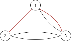 例如,选择下述 $2$ 条边就可以构成该图的一棵生成树: