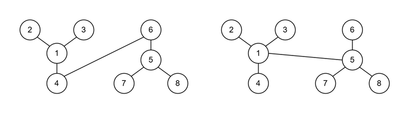 ### 样例说明 1 对于第 1 个测试点,由于所有简单路径都只包含至多 2 条边,因此所有可能的排列均被计数。 对于第 2 个测试点,被计数的排列共有 $8$ 种,分别是 $(1, 2, 4, 3)$、$(1, 3, 4, 2)$、$(2, 1, 3, 4)$、$(2, 4, 3, 1)$、$(3, 1, 2, 4)$、$(3, 4, 2, 1)$、$(4, 2, 1, 3)$、$(4, 3, 1, 2)$。 对于第 3 个测试点,需要求所有 $4$ 个顶点的树 $T$ 的 $f(T)$ 的总和。注意 $T_0$ 可能不含任何边。 对于第 4 个测试点,作为好树的例子,如下图所示: ![](https://cdn.luogu.com.cn/upload/vjudge_pic/AT_tupc2024_i/8201f85794558eea0df8d3b867cf633868cfd5635e76b8793329aa65a255eb76.png) ### 数据范围 - $1\le Q\le 2\times 10 ^ 5$ - $1\le N\le 2\times 10 ^ 5$ - $1\le K\le 2\times 10 ^ 5$ - $1\le A_i < B_i \le N$ - 所有输入文件中 $N$ 的总和不超过 $2\times 10^5$ - 输入给定的图均为树 - 输入全部为整数 由 ChatGPT 5 翻译
