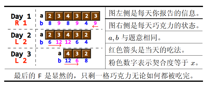 * `R x`:表示从右边吃 $x$ 格巧克力。