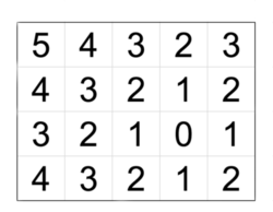 在第二个样例中,有一个 $3\times 6$ 的矩阵,$0$ 在 $(2, 3)$。