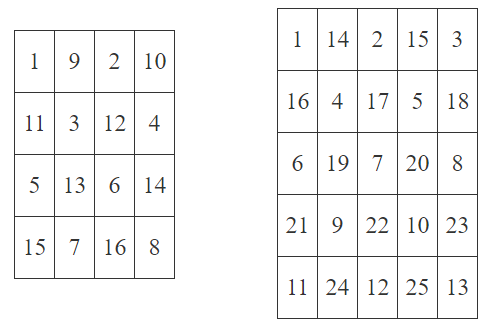 You are given a chessboard of size $ n \times n $ . It is filled with numbers from $ 1 $ to $ n^2 $ in the following way: the first $ \lceil \frac{n^2}{2} \rceil $ numbers from $ 1 $ to $ \lceil \frac{n^2}{2} \rceil $ are written in the cells with even sum of coordinates from left to right from top to bottom. The rest $ n^2 - \lceil \frac{n^2}{2} \rceil $ numbers from $ \lceil \frac{n^2}{2} \rceil + 1 $ to $ n^2 $ are written in the cells with odd sum of coordinates from left to right from top to bottom. The operation $ \lceil\frac{x}{y}\rceil $ means division $ x $ by $ y $ rounded up.