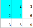 以下为第一个样例的矩阵及选中的子矩形(蓝色部分):