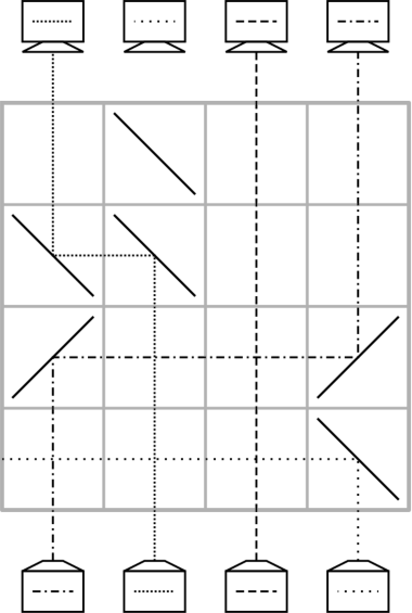 允许激光束到达非对应的接收器,但这些不计入答案。