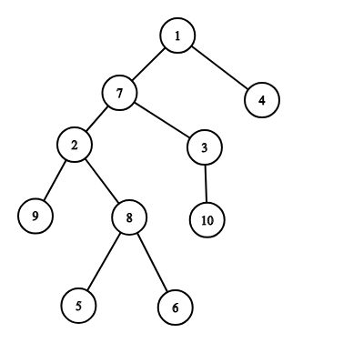 你的任务是从这棵树中选择两对顶点(所有被选中的顶点都必须互不相同),即 $(x_1, y_1)$ 和 $(x_2, y_2)$,使得 $x_1$ 和 $y_1$ 都不在从 $x_2$ 到 $y_2$ 的简单路径上,反之亦然(即 $x_2$ 和 $y_2$ 也都不在从 $x_1$ 到 $y_1$ 的简单路径上)。