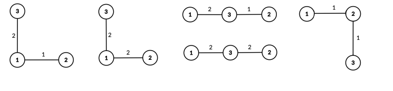 有一次,在上课时,Sasha 感到无聊,决定和朋友们聊天。突然,他看到了 Kefa。关于 Kefa 的话题可以聊个没完没了,所以我们就不展开了。话题转到了图论。Kefa 承诺,如果 Sasha 帮他计算出美丽树的数量,他就会告诉 Sasha 一个有趣的图论事实。
