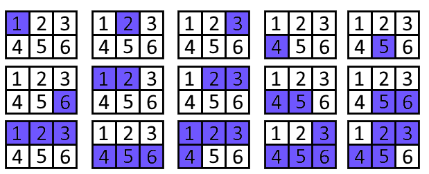 一天,Sasha 去公园散步。在公园里,他发现自己最喜欢的长椅被人占了,只好坐在旁边的长椅上。他坐下后,开始聆听寂静。突然,他产生了一个疑问:公园的不同地方,寂静的声音会不会不一样?事实的确如此。我们将公园划分为 $1 \times 1$ 米的方格,称之为单元格。行从上到下编号为 $1$ 到 $n$,列从左到右编号为 $1$ 到 $m$。现在,每个单元格可以用一对整数 $(x, y)$ 表示,其中 $x$ 表示行号,$y$ 表示列号。Sasha 知道,单元格 $(i, j)$ 的寂静程度为 $f_{i,j}$,所有 $f_{i,j}$ 组成了 $1$ 到 $n \cdot m$ 的一个排列。Sasha 决定统计有多少个“愉悦的寂静区间”。 我们取一个区间 $[l \ldots r]$。记 $S$ 为所有满足 $l \le f_{i,j} \le r$ 的单元格 $(i, j)$ 的集合。若对于 $S$ 中任意一对单元格,都只存在一条简单路径将它们连接起来(路径不能经过 $S$ 之外的单元格),则称区间 $[l \ldots r]$ 是“愉悦的”。换句话说,集合 $S$ 在平面上应当构成一棵树。Sasha 很快完成了这个任务,并将算法命名为“寂静之声算法”。 时光流逝,如今只剩下这个算法的传说。为了证明这个故事的真实性,你需要帮助 Sasha,统计不同的愉悦的寂静区间的数量。两个区间 $[l_1 \ldots r_1]$ 和 $[l_2 \ldots r_2]$ 被认为是不同的,当且仅当 $l_1 \neq l_2$ 或 $r_1 \neq r_2$ 或两者都不相等。