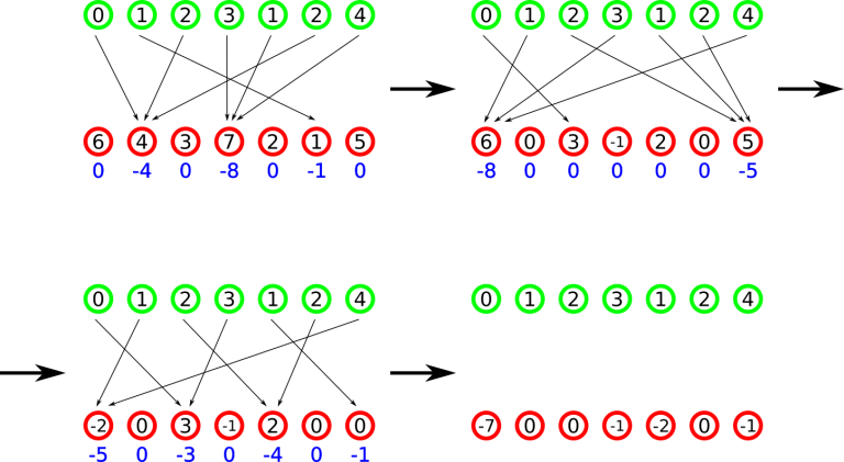 接下来的 $t$ 行,每行输出 $m$ 个整数 $a_1, a_2, \ldots, a_m$($1 \le a_i \le m$),描述每一回合的攻击方案。每个整数表示本回合中第 $i$ 个 Evlampy 的小组攻击第 $a_i$ 个敌方小组。允许攻击已经被摧毁的敌方小组。