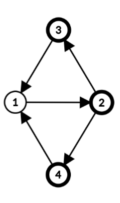 接下来 $m$ 行,每行两个正整数 $u_i$ 和 $v_i$($1\le u_i, v_i\le n$,$u_i\ne v_i$),表示一条从 $u_i$ 到 $v_i$ 的单向道路。