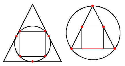 以下是样例的示意图。注意,三角形不是等边三角形,而是等腰三角形(高等于底边长度),因此它能以唯一的方式内切于正方形。