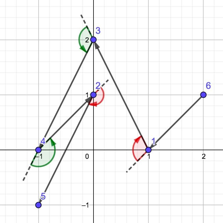 可以看到,这条折线不自交且为绕行折线,因为在点 $2$ 处为左转。