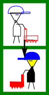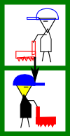 2) Move one cell down (that is, from cell $ (r,c) $ to cell $ (r+1,c) $ ), and change your direction to the opposite one.- if you were facing right previously, you will face left