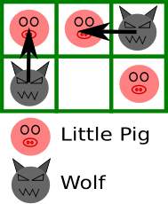 在一个大小为$n*m$的二维网格里有几只猪和几只狼,这个网格里每一个单元只包含一只猪或一只狼。 如果猪和狼在同一条公共边上,则我们就说他们相邻。因为小猪怕狼,所以每只猪旁边只可能会有一只狼,但是每只狼旁边可能会有好几头猪。 狼将选择其中与其相邻的一头并吃掉,此过程将不再重复。也就是说,一头狼只能吃一头猪,而小猪在被吃掉后会消失且不能被别的狼吃。 求最多有多少只猪会被狼吃掉。