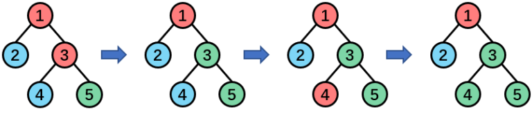 第二行包含 $n$ 个整数 $c_1,c_2,\ldots,c_n$($1\le c_i\le n$),其中 $c_i$ 表示节点 $i$ 的初始颜色。