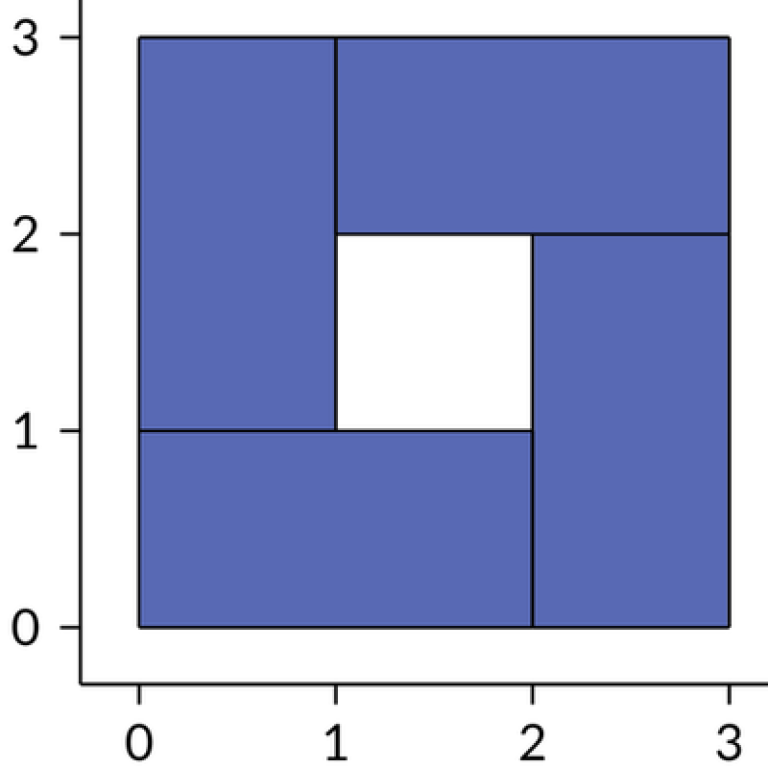最初,每个国家的领土内都有一座矩形城堡。城堡的边平行于坐标轴,顶点的坐标均为整数。有些城堡可能会接触到所属国家的边界、边或其他城堡。奇迹般地,经过所有合并后,这些城堡依然完好无损。不幸的是,我们现在仅能通过这些城堡的位置来还原最初各国的领土。