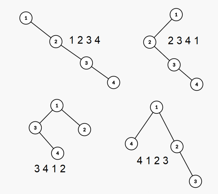 下图展示了样例测试中所有可能的树以及它们对应的循环左移次数。