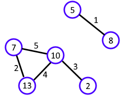 上图展示了一块有 $5$ 根导线的电路板。编号为 $2, 5, 7, 8, 10, 13$ 的接触点被使用。此时,电信号可以从第 $2$ 根导线传递到第 $3$ 根导线,但无法传递到第 $1$ 根导线。