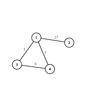 The first line contains two integers $ n $ and $ m $ ( $ 1 \le n,m \le 10^5 $ ) — the number of vertexes and edges in the graph. The $ i $ -th of the next $ m $ lines contains three integers $ a_i $ , $ b_i $ and $ w_i $ ( $ 1 \le a_i, b_i \le n, a_i \neq b_i, 0 \le w_i < 32 $ ) — the endpoints of the $ i $ -th edge and its weight. It's guaranteed there aren't any multiple edges, the graph is connected and there isn't any simple cycle of length greater than $ 3 $ which passes through the vertex $ 1 $ .