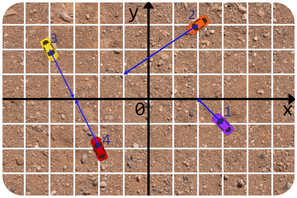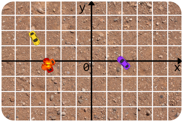保证所有汽车的初始位置各不相同(即对于 $i \ne j$,$(x_i, y_i) \ne (x_j, y_j)$)。