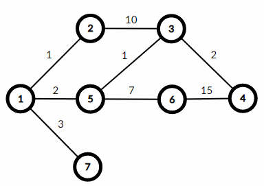 - 长度 $3$:边 $(1, 5)$、$(5, 6)$、$(6, 4)$,权值为 $2+7+15=24$;