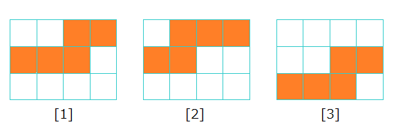例如,在下图中,一周有 $4$ 天,Alice 涂色了连续的 $5$ 天。[1] 和 [2] 是不同的形状,但 [1] 和 [3] 是相同的形状。