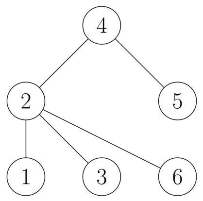 接下来的 $n-1$ 行,每行包含两个整数 $u_i$ 和 $v_i$($1 \le u_i, v_i \le n$,$u_i \neq v_i$),表示存在一条连接顶点 $u_i$ 和 $v_i$ 的边。保证给定的边构成一棵树。