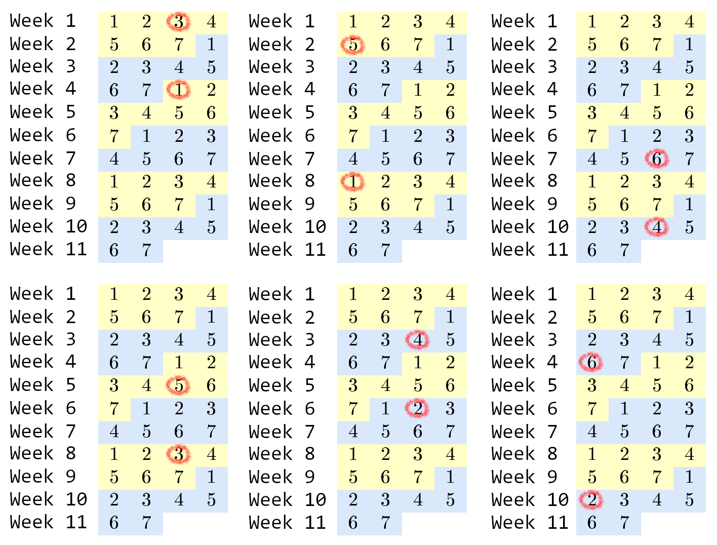 如果一对 $(x, y)$ 满足 $x < y$,并且第 $y$ 月的第 $x$ 天与第 $x$ 月的第 $y$ 天是同一周的同一天,则称该对为“模糊对”。